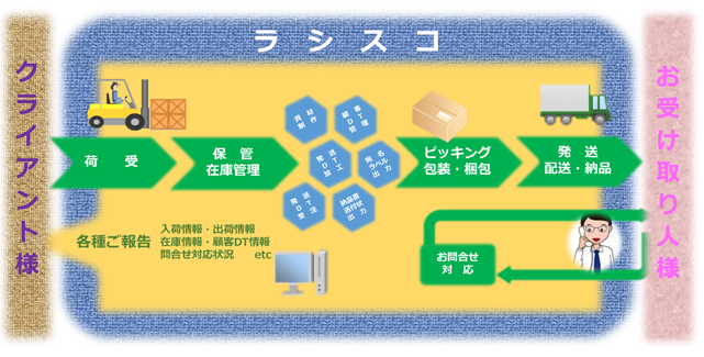 保管場所と管理スタッフの活用によるスペース費、人件費等の大幅なコスト削減を強力にお手伝い。 もちろん商品にあわせて包装や梱包もしっかり、また、発送後の アフターフォローも万全、発着等の問い合わせに対してもスピー ディーに対応し、お客様のCSのクオリティアップにつなげます。 |